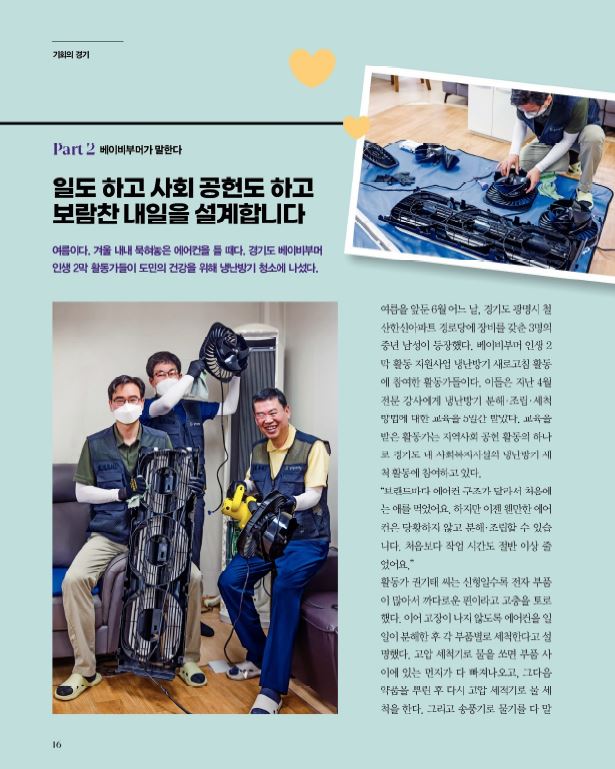 냉난방기 새로고침 활동 모습을 '나의 경기도' 라는 경기도 잡지에서 취재한 내용이 발간되어서 공유드립니다.